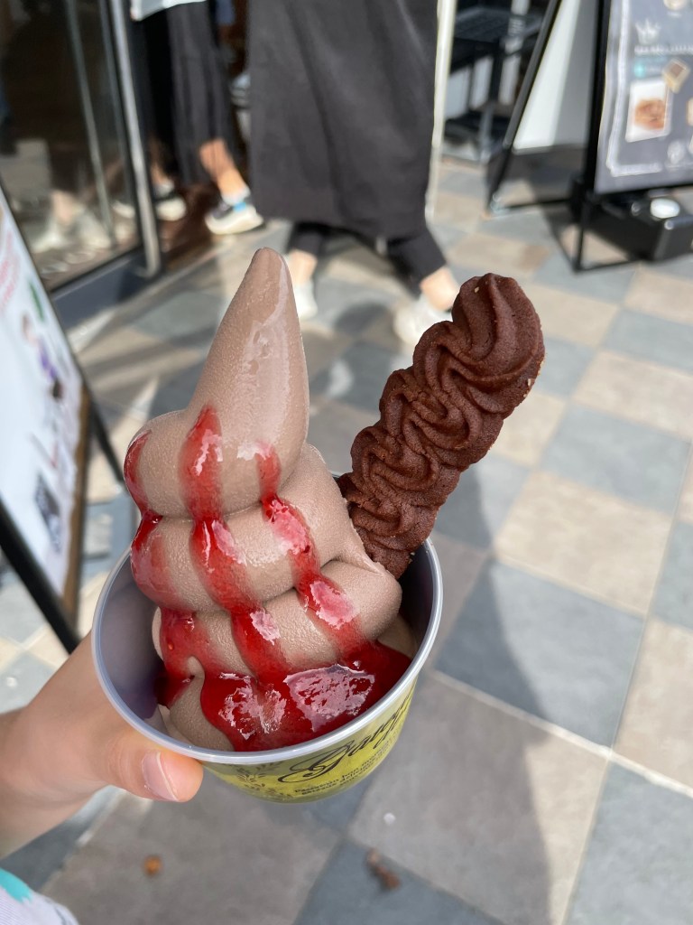 ラスクの試食をしつつ、チョコボールとチョコソフトを購入🍨
