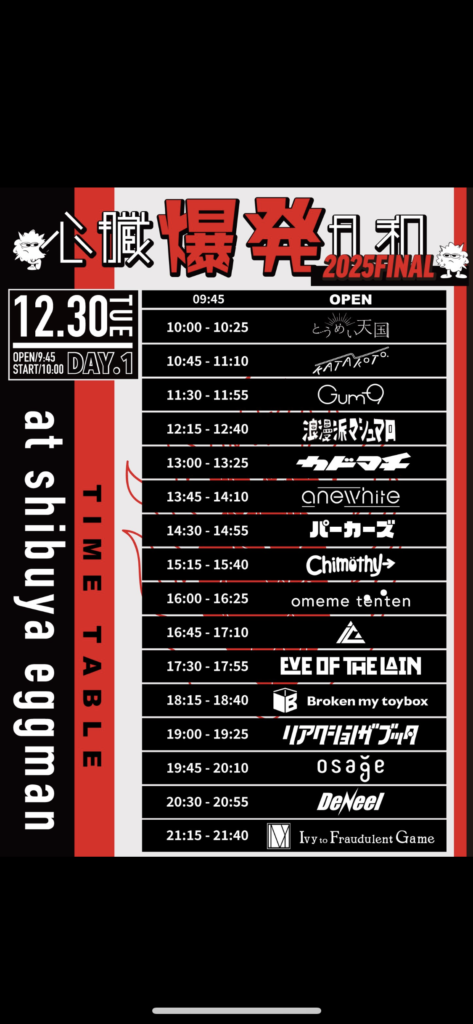 事前にHPやXで途中の入退場OKとなっているのを確認して行きましたが、普段のライブは途中の出入りがダメな様な情報もあったので、参加するライブごとにチェックは必要です。