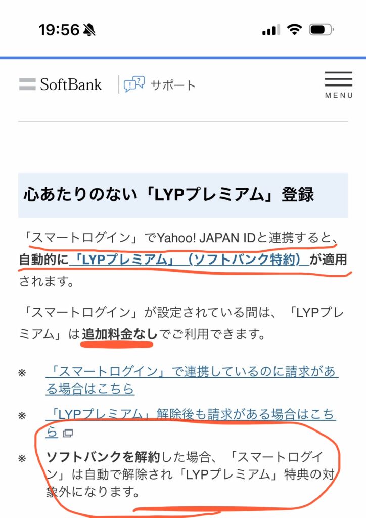 ソフトバンク解約時に自動でLYPプレミアムも解約される。