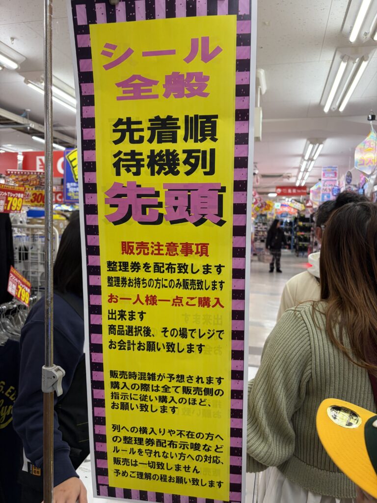 アナウンス「只今からシールの販売をします」